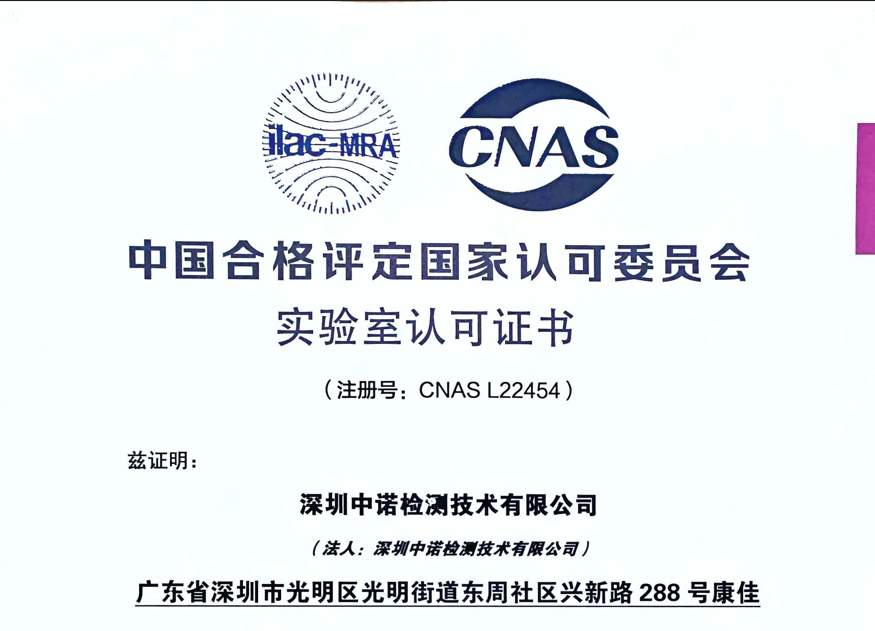 熱烈祝賀深圳中諾檢測技術有限公司取得CNAS資質證書!